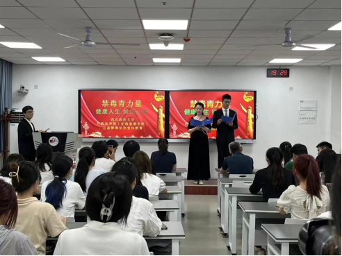 为深入落实学习贯彻习近平新时代中国特色社会主义思想主题教育,扎实开展新时代高校毒品预防教育工作,6月13日下午,葡京娱乐场 在5号教学楼206教室开展公益禁毒普法宣传教育活动。校团委副书记秦立出席活动,葡京娱乐场 辅导员周磊磊、王昕和学生代表共计40余人参加活动,本次活动由葡京娱乐场 党委副书记李芳主持。