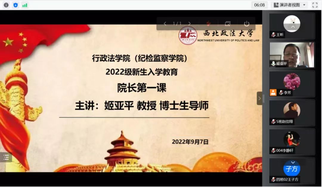 金秋九月至,新生入学教育进行时。2022年9月7日上午,葡京娱乐场 (葡京娱乐场 )举办了2022级新生第一场入学教育活动,即“院长第一课”,由葡京娱乐场 院长、博士生导师、姬亚平教授主讲。姬亚平以“校史院情与学科专业介绍与学业规划”为主题,通过腾讯会议线上方式,为2022级新生带来了一场精彩的专业讲座。本次活动由行政法葡京娱乐场 副书记李芳主持,2022级辅导员王昕以及全体新生参加。