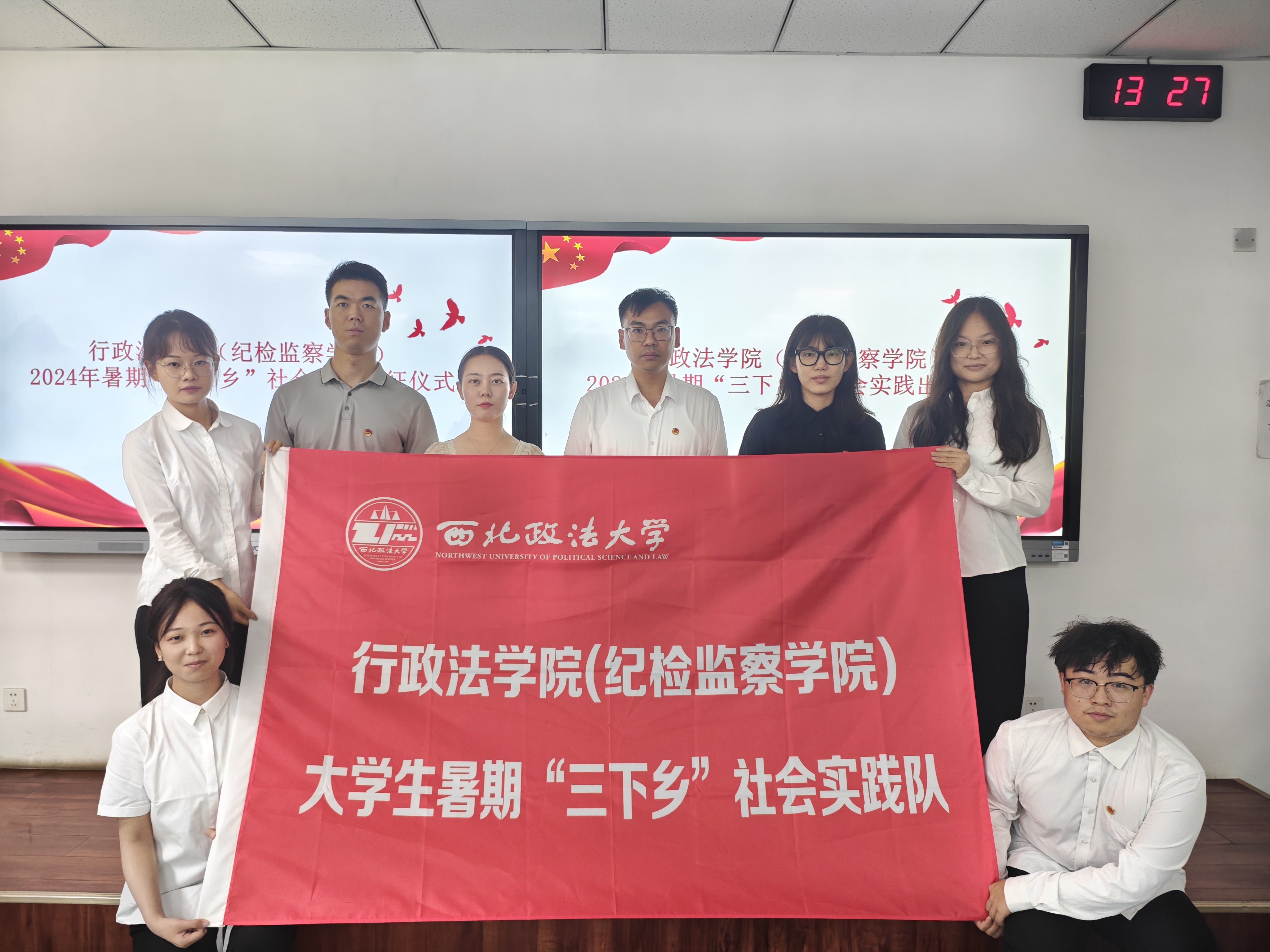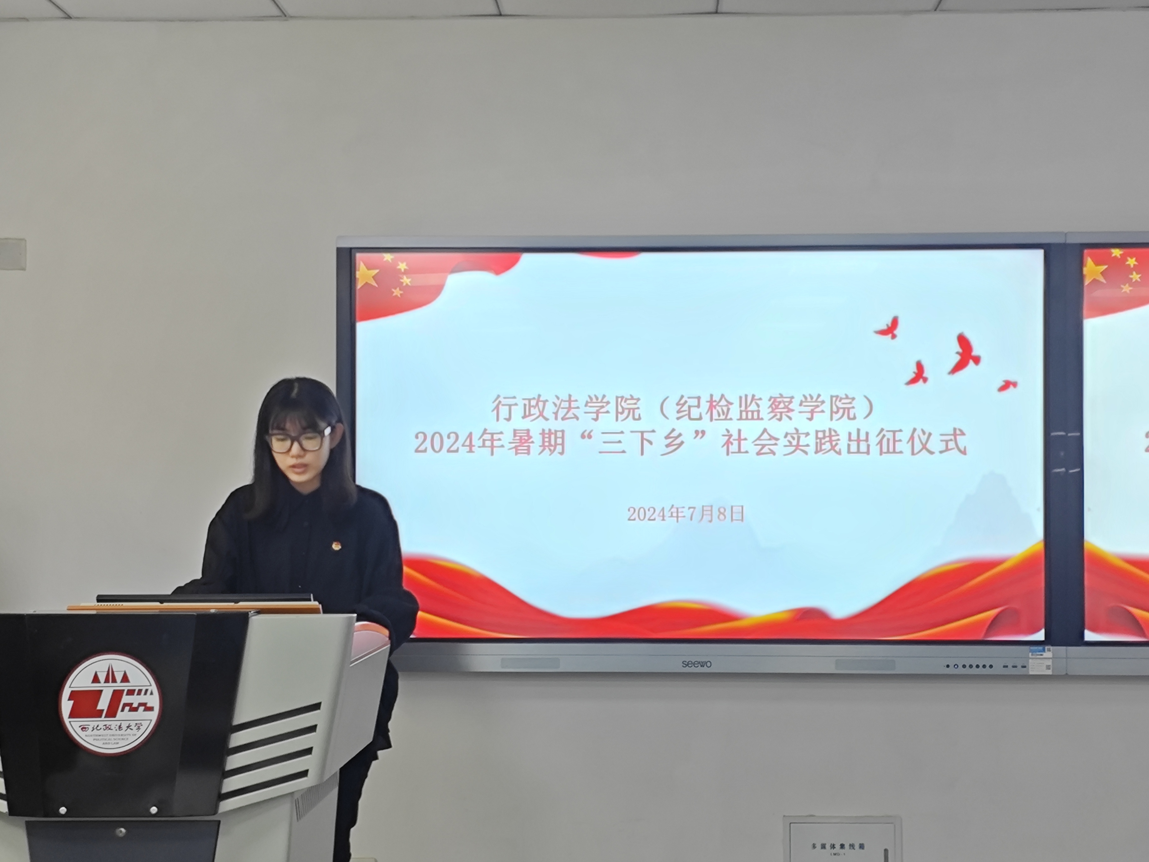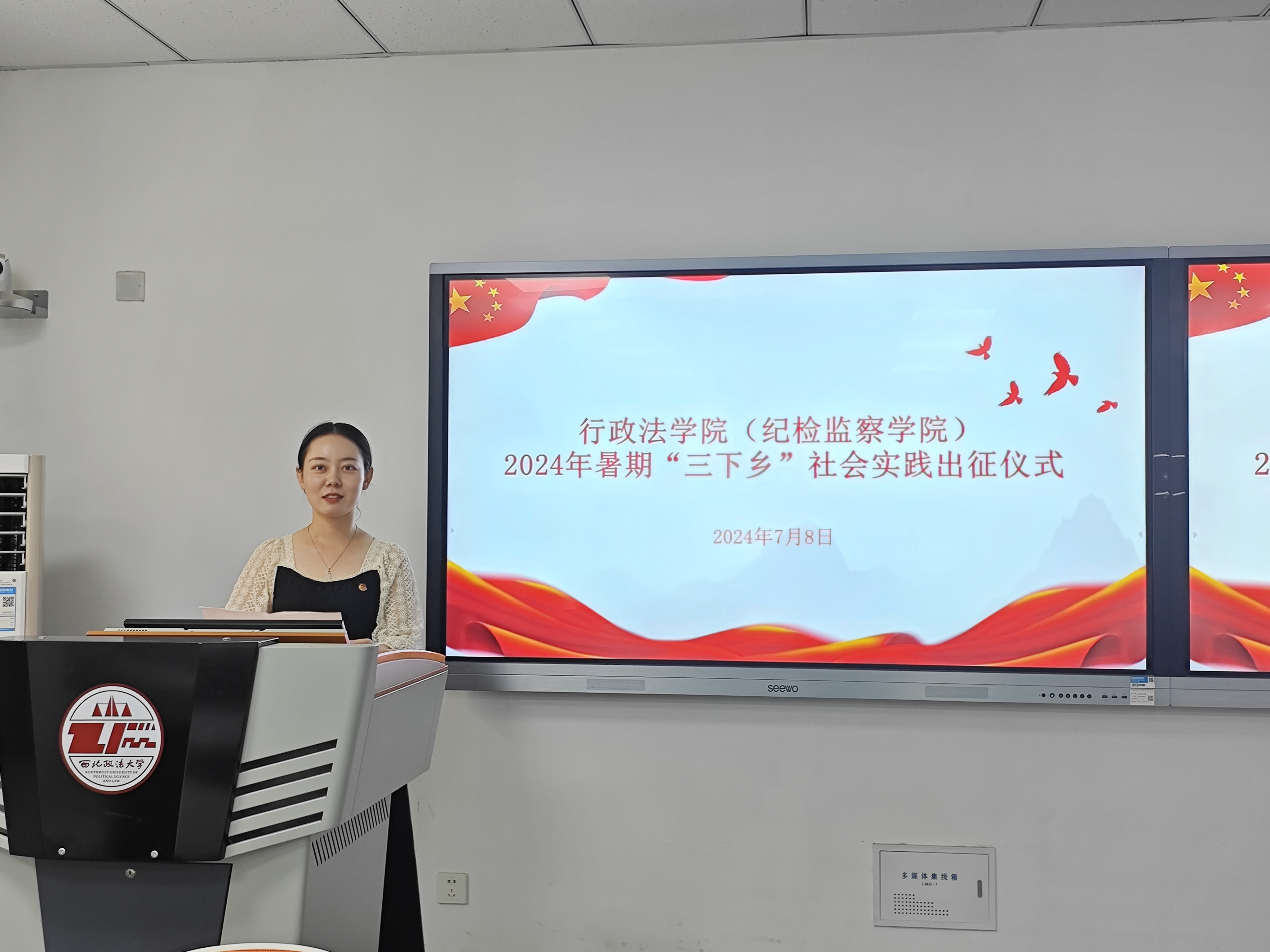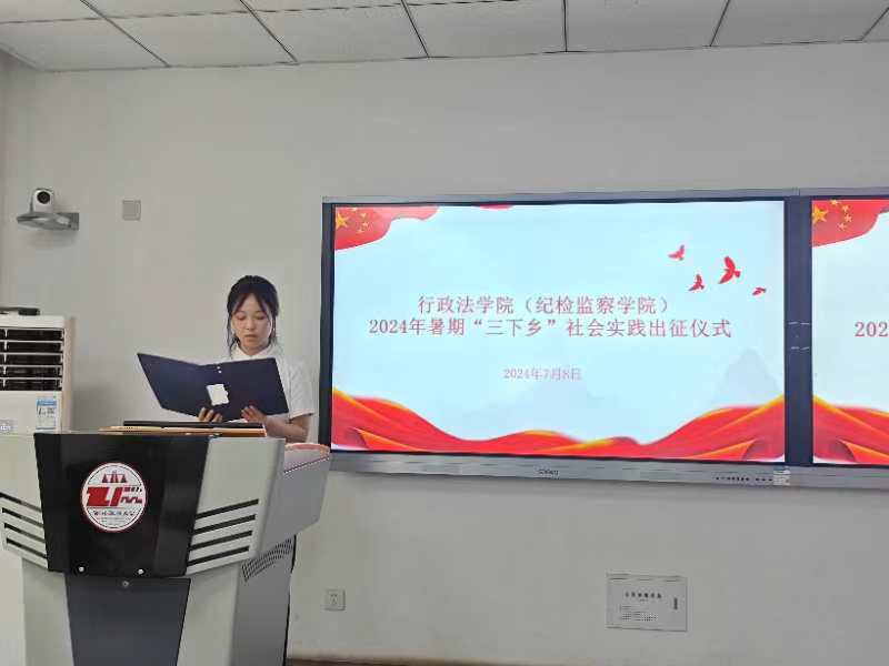 2024年7月8日中午,葡京娱乐场 2024年暑期“三下乡”社会实践出征仪式在诚意楼201教室举行。葡京娱乐场 团委书记朱骞、团总支书记徐泽蓉、2022级辅导员王昕、2023级辅导员柴江、葡京娱乐场 各实践队领队及实践队代表参加了本次活动。