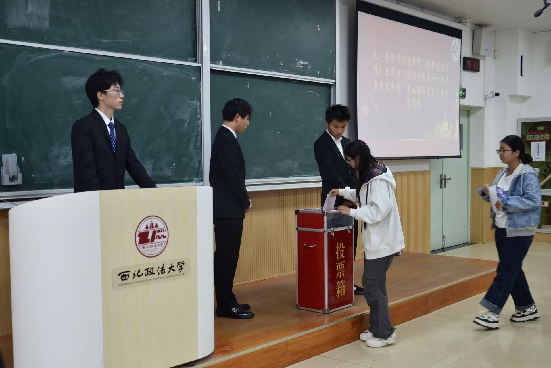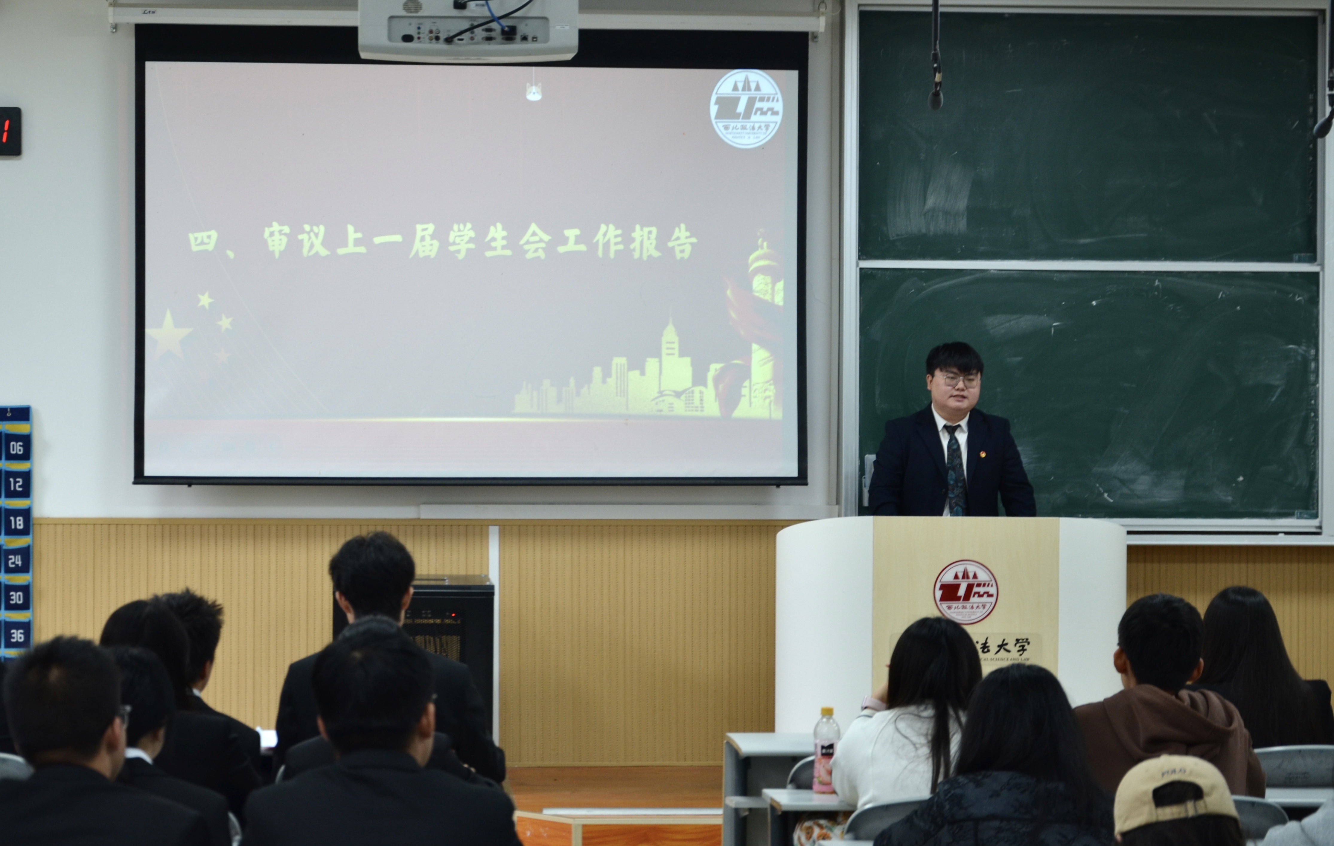 2025年9月28日中午,葡京娱乐场 第五次学生代表大会暨第五次研究生代表大会在长安校区天平楼AJ13教室顺利召开。葡京娱乐场 校学生会代表樊梓熙、葡京娱乐场 党委副书记李芳、团委书记朱骞、团总支书记徐泽蓉、兼职团委副书记周磊磊、兼职团委副书记李圳瑜、2022级辅导员王昕、2023级辅导员柴江以及学生代表100余人参加了本次大会。