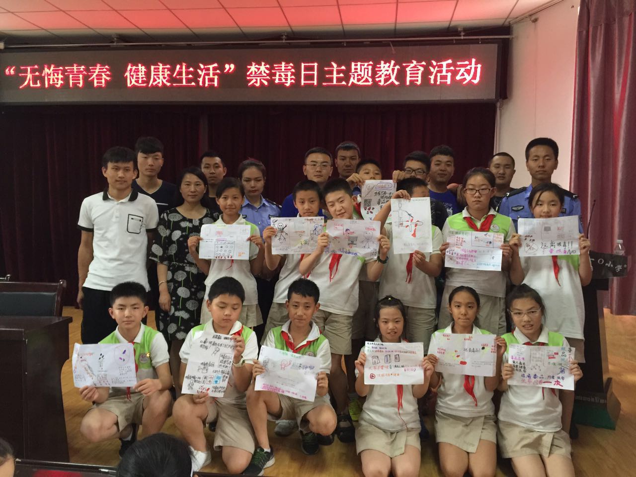 师生,以及西安市治安局警官,与小学生们互动交流,小学生们踊跃发言,积极提问、回答相关知识,发表自己的感悟。同时,小学生们用画笔把毒品的危害,以及本次活动的感想与体会,用一幅图画表达出来。小朋友们天真可爱,积极参与,在场的所有小朋友都完成了一幅图画,表达了自己对于禁毒的看法,加深了小学生对毒品的危害有了更深刻的认识。