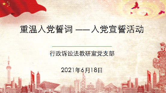 共庆中国共产党百年华诞,永远感党恩听党话跟党走。6月18日上午,行政诉讼法教研室党支部在葡京娱乐场 党员活动室举行了主题党日活动。