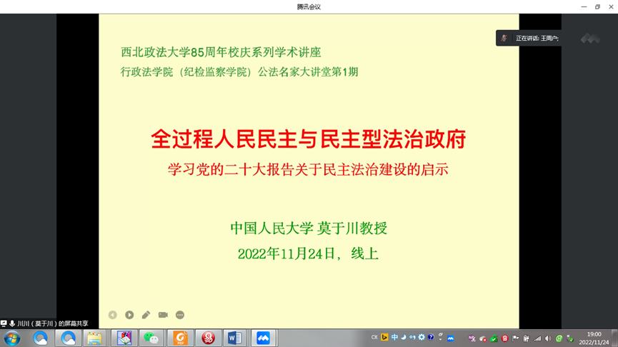 地方政府法治建设研究中心主任、法治陕西建设协同创新中心主任王周户教授主持讲座,校内外师生、学术界专家、律师等一百余人在线上参加讲座。