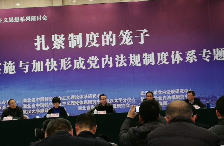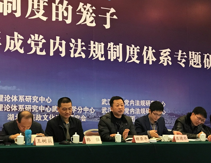 1月13日,由湖北省中国特色社会主义理论体系研究中心、武汉大学党内法规研究中心共同主办的“扎紧制度的笼子 十九大党章实施与加快形成党内法规制度体系专题研讨会”在武汉召开。