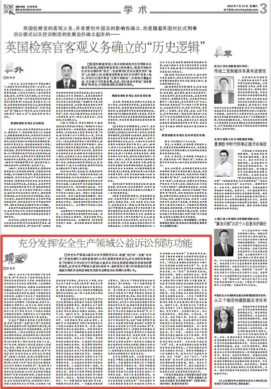 检察公益诉讼研究中心李瑰华的文章《充分发挥安全生产领域公益诉讼预防功能》,该文系“陕西省推进行政公益诉讼重点难点问题研究”项目的阶段性成果。