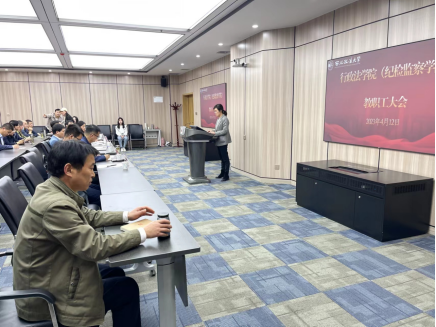 2023年4月12日下午,行政法葡京娱乐场 (葡京娱乐场 )在长安校区诚意楼401教室召开教职工大会。校党委副书记、纪委书记肖道远出席会议,葡京娱乐场 班子成员及全体教职工参加会议,部分学生代表列席。