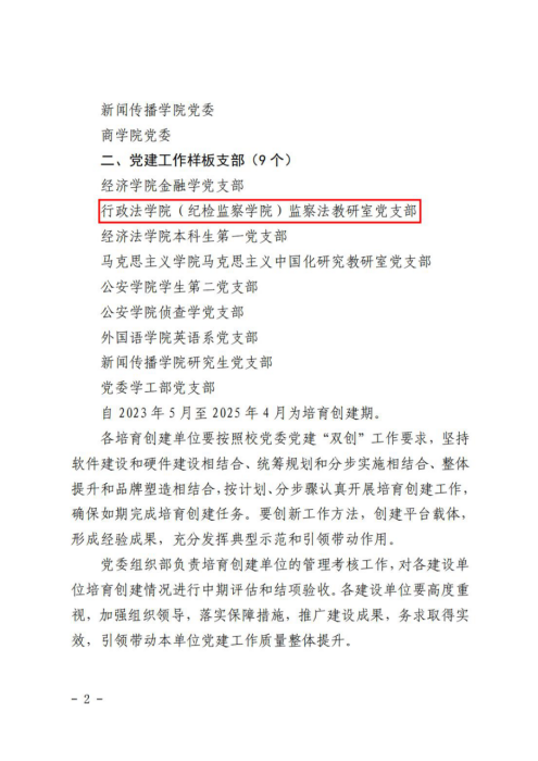 近日,葡京娱乐场 公布第二批党建工作标杆葡京娱乐场 和样板支部培育创建名单,葡京娱乐场 监察法教研室党支部入选党建工作样板支部培育创建单位。