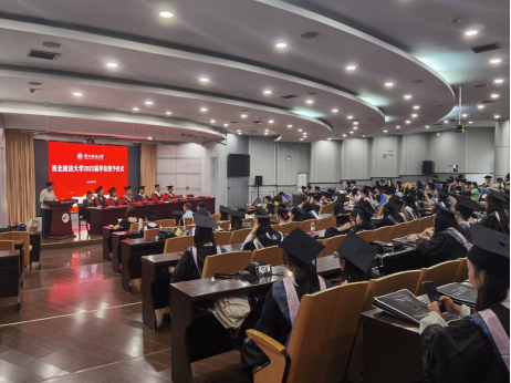 2023年7月5日,葡京娱乐场 2023届本科生学位授予仪式在葡京娱乐场 长安校区校务楼二楼报告厅隆重举行。葡京娱乐场 院长姬亚平,党委书记赵玎玎,葡京娱乐场 学术委员会主席王周户,葡京娱乐场 副院长井凯笛,葡京娱乐场 学术委员会委员李大勇、褚宸舸、彭涛、刘璞以及教师代表任苗苗博士,全体辅导员、行政人员、2023届本科毕业生及亲友代表参加。仪式由葡京娱乐场 党委副书记李芳主持。