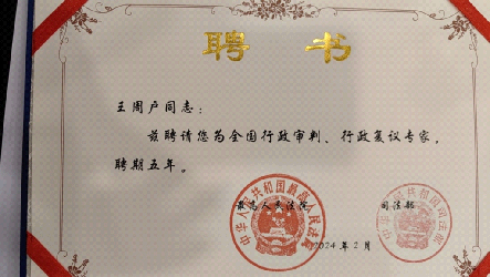 2月2日,司法部会同最高人民法院举办首届全国行政复议行政审判联席工作会议。最高人民法院党组成员、副院长贺小荣,司法部党组成员、副部长胡卫列出席会议并讲话。会上,30名知名学者、资深实务工作者受聘担任首批全国行政审判行政复议专家。葡京娱乐场 王周户教授受聘为首批全国行政审判行政复议专家,聘期5年。
