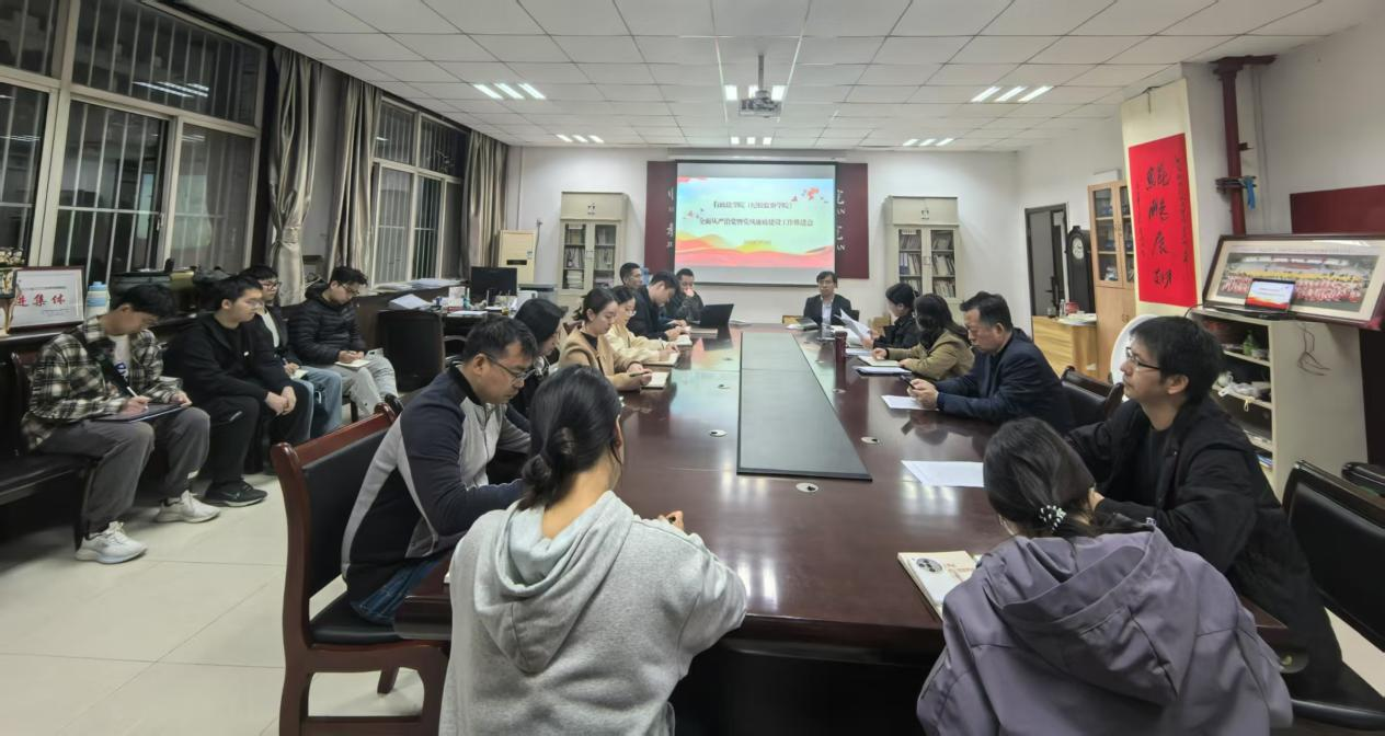 3月24日晚上,葡京娱乐场 在葡京娱乐场 资料室召开全面从严治党暨党风廉政建设工作推进会,葡京娱乐场 领导班子成员、党委委员、党支部书记、党风廉政监督员、校风廉洁信息员参加会议。葡京娱乐场 党委书记赵玎玎主持会议。