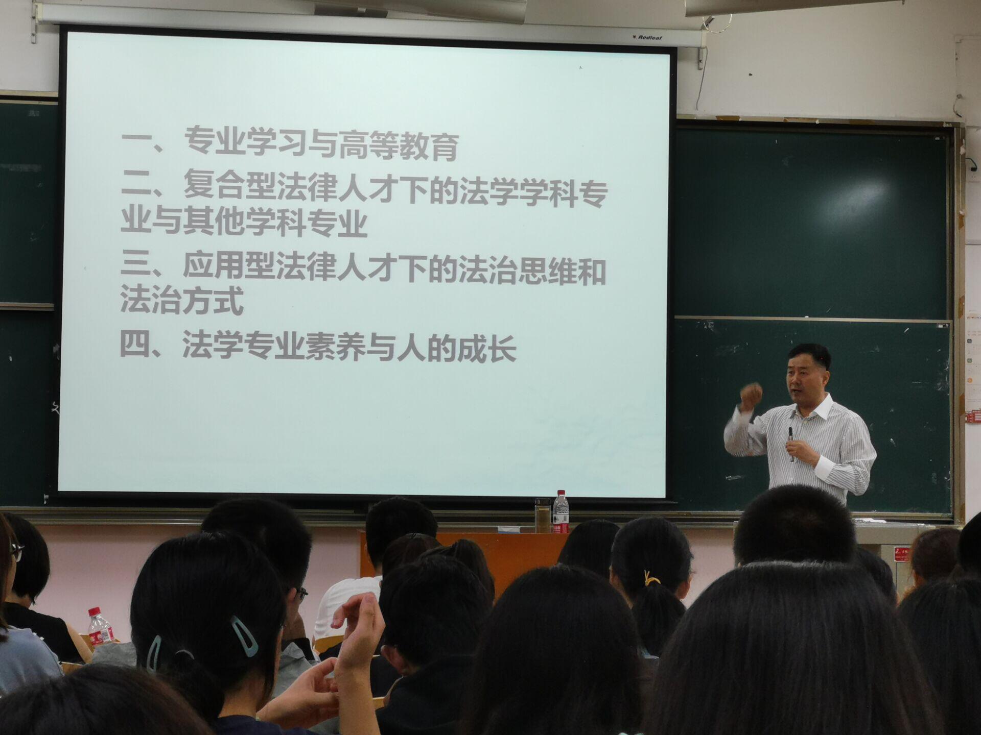 王周户教授首先细致地向同学们阐释了专业学习与高等教育的内涵和关系。他认为,同学们高考后通过选择专业进入高等教育,没有不通过专业教育而学成的才能,但只学习专业而忽视其他教育或专业教育塑造人的哲理只会成为专业方面的工具。他希望同学们能够珍惜大学生活的自由时间,打好基本功,掌握分析新事物的能力。 就葡京娱乐场 法律人才培养的专业性,王周户教授也提出了自己的见解。对于复合型法律人才下的法学学科专业与其他学科专业的问题,他强调复合型法律人才必须在精通专业知识的同时了解更多其他知识,考虑国家传统等问题,才能更好地在社会独当一面。王教授旁征博引,以诸多事例告诉同学们,要用长时间的积淀形成应用型法律人才下的法治思维和法治方式,尊重法律知识结构,不断参与实践。