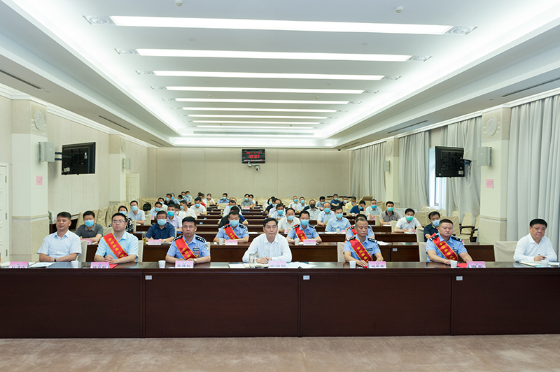 表彰会议由国务院副秘书长、国家禁毒委员会副主任孟扬同志主持。会议首先由国务委员、国家禁毒委员会主任、公安部部长赵克志同志传达习近平总书记的贺信和指示。国家禁毒委员会副主任兼国家禁毒办主任刘跃进同志宣读《关于表彰全国禁毒工作先进集体先进个人的决定》。在先进集体和先进个人代表发言后,赵克志同志做重要讲话。会议在国务院小礼堂设立主会场,各省、市、县(区)设立分会场,采取视频会议方式开至区县。陕西省分会场设在陕西省政府视频会议室,受到表彰的先进集体代表和先进个人在省级分会场集中参会。陕西省人民政府副省长、省禁毒委员会主任、公安厅厅长胡明朗同志会议前接见了褚宸舸教授等先进个人和先进集体代表,并在会后同省禁毒委其他领导一起跟大家合影留念。