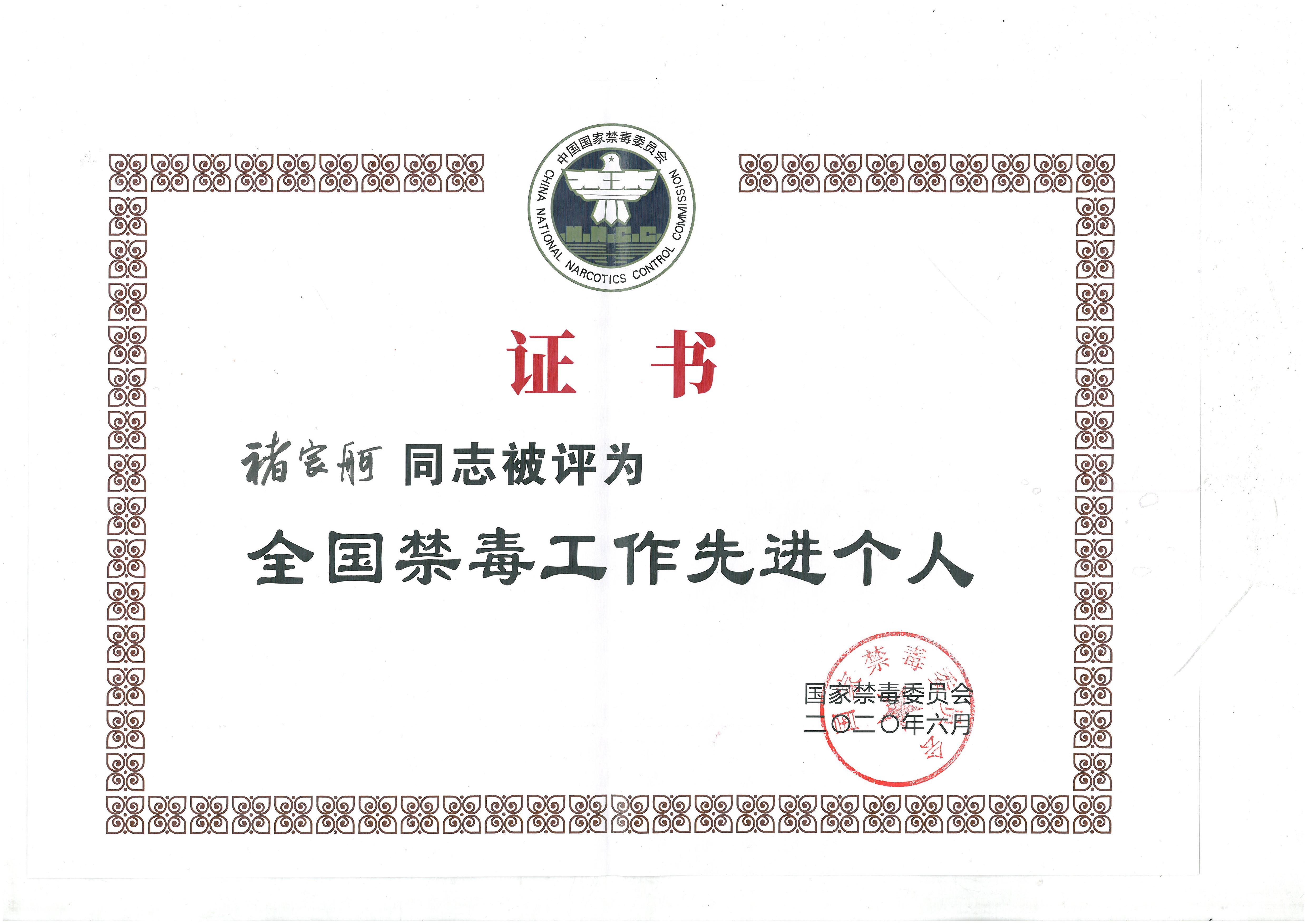 6月23日上午,国家禁毒委员会召开全国禁毒工作先进集体和先进个人表彰会议,葡京娱乐场 博士生导师、枫桥经验与社会治理研究院执行院长、禁毒法律与政策研究所所长褚宸舸教授荣获“全国禁毒工作先进个人”荣誉称号。