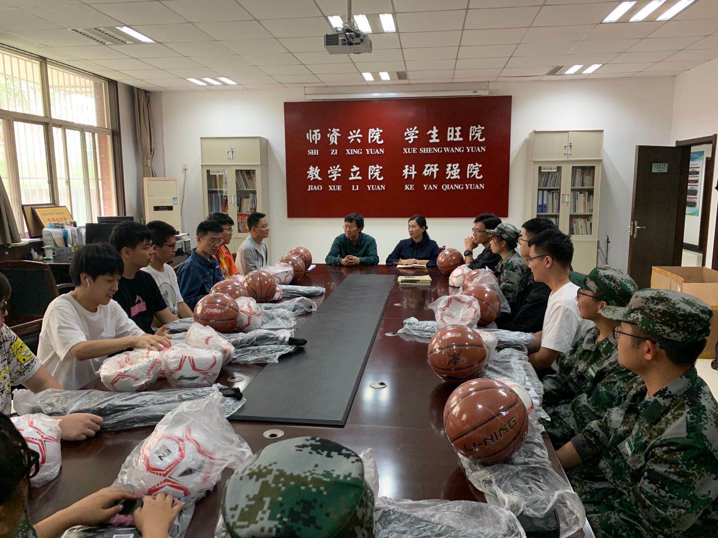 为丰富葡京娱乐场 学生的课余生活,提高同学们的身体素质,由西安云德律师事务所资助的体育用品于2020年9月25日上午发放。葡京娱乐场 党委书记呼勇、葡京娱乐场 党委副书记李芳以及葡京娱乐场 各班体育委员参加发放仪式。