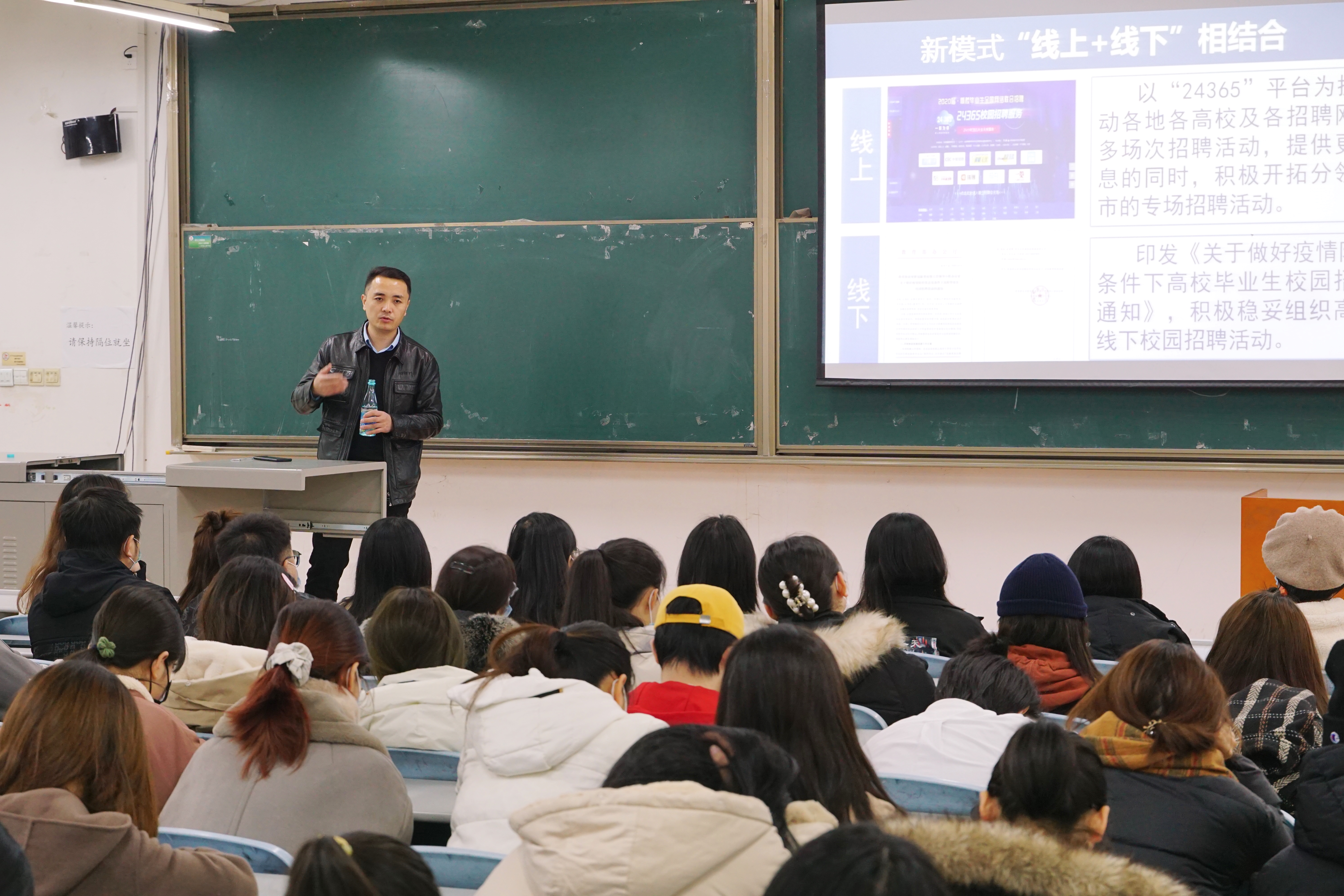 2020年12月28日下午,葡京娱乐场 在长安校区AJ12教室举办2021届毕业生就业推进会。会议由葡京娱乐场 招生就业处副处长李君主讲,葡京娱乐场 副书记、2017级辅导员老师以及2017级全体学生参加会议。