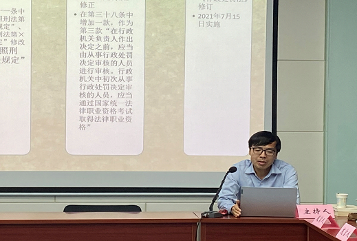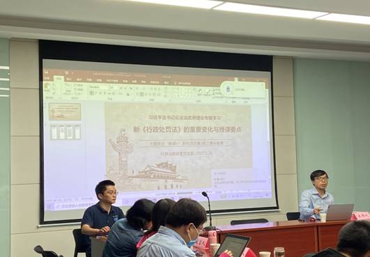 活动的第二部分,由教研室主任杜国强副教授主持关于行政处罚法的集体备课。杜国强副教授认为,新的《行政处罚法》在修法技术上不是法律修正与法律修正案,而属于法律修订,涉及到的条文数量多、内容广,因此需要准确理解、凝练教学重点。