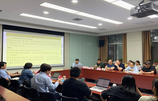 2021年5月26日晚7时,行政法教研室党支部第3期主题党日“教研+”活动在雁塔校区人权研究中心会议室活动举行。本次活动围绕习近平总书记2018年8月24日的讲话“坚持以全面依法治国新理念,新思想、新战略为指导,坚定不移走中国特色社会主义法治道路”主题学习,以新《行政处罚法》为内容进行集体备课,由教研室党支部书记钱卿老师领学,教研室主任杜国强副教授主持。王周户教授、贡世康教授、王德星副教授、李大勇教授、张艳博士、雷苗苗博士、杨彬权博士、李龙贤博士等教研室老师到会。西安铁路运输法院副院长赵新等多名法官、律师以及研究生30余人参加本次活动。