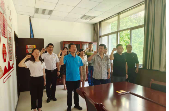 在“党员之家”活动室召开老党员重温入党誓词暨党委理论学习中心组(扩大)第四次集中学习活动。全体班子成员、支部书记、教研室主任、党员代表参加活动。