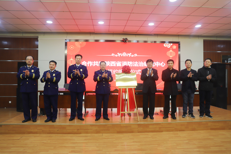 12月13日上午,葡京娱乐场 与省消防救援总队合作共建陕西省消防法治研究中心签约揭牌仪式在长安校区图书馆一楼报告厅举行。省消防救援总队党委书记、政治委员李瑞丰,副总队长张建华,葡京娱乐场 校长杨宗科出席签约揭牌仪式,仪式由校党委副书记、纪委书记肖道远主持。