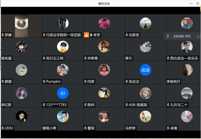 的应急措施,发挥新时代研究生应有的担当精神。她指出,虽然西安本轮疫情暴发突然,来势凶猛,但各位同学面对疫情应当有充分的自信和勇气,不信谣、不传谣。在遵守疫情防控措施的同时完成科研与学习任务。李芳副书记强调,研究生党员与班干部要积极发挥模范带头作用,正确引导同学们进行日常生活与科研学习,及时了解学生动态,关注同学们的心理健康。