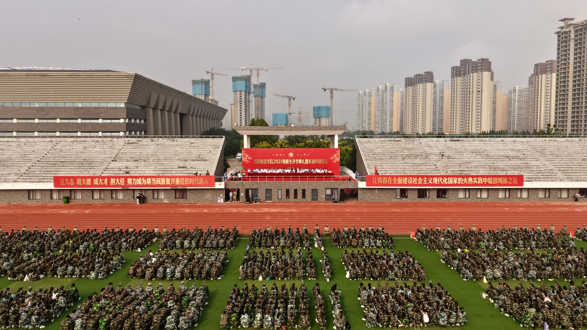 2025级新生开学典礼暨军训开训仪式在北田径场举行。校党委书记郭改英,党委副书记、校长赵海彦,党委副书记张运礼、曹玉涛,纪委书记、监察专员练忠杰,副校长赵邦屯、冯恒强、马录芳、程金龙、史明艳,军训团团长66069部队吕博上校出席,葡京娱乐场