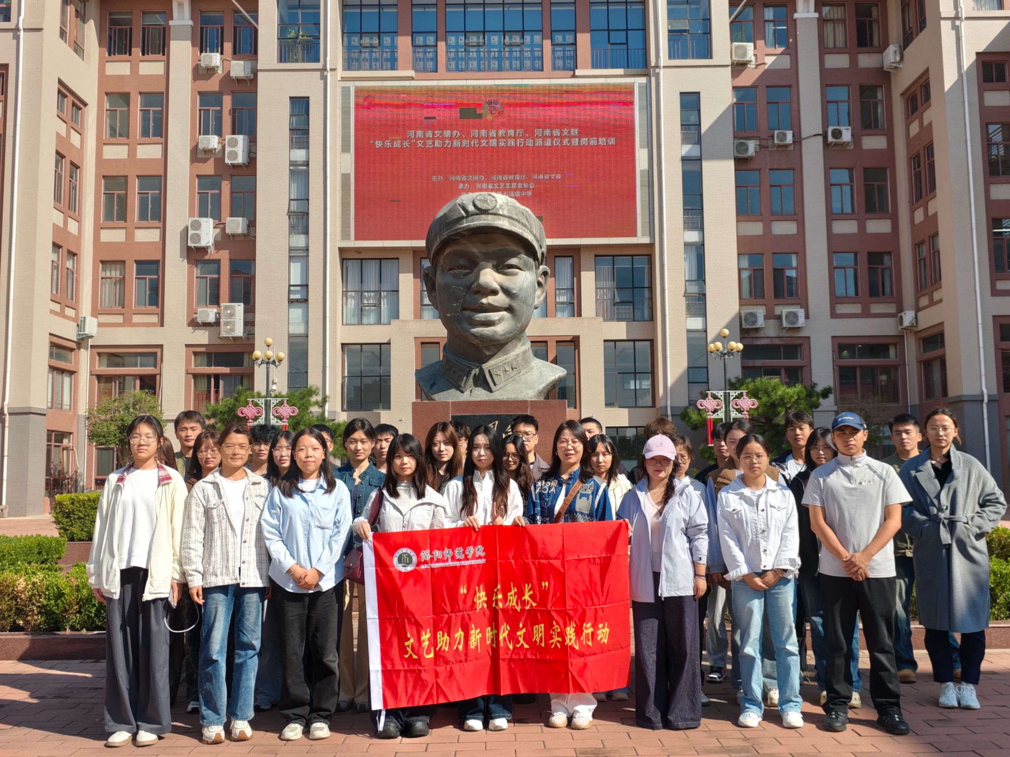 9月25日上午,由河南省文明办、教育厅和文联联合开展的2025年下半年“快乐成长”文艺助力新时代文明实践行动派遣仪式暨岗前培训在郑州市第七高级中学举行。省委宣传部二级巡视员高峰,省文联副主席米闹等出席活动,来自全省14所高校共166名文艺志愿者参会。