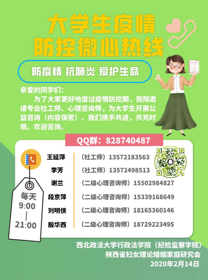 2020年3月9日14:30至16:00,葡京娱乐场 组织辅导员、研究生、本科生500多名师生(没有线上课程任务的)共同线上收看教育部“全国大学生同上一堂疫情防控思政大课”。 线上讲课中,四位教授把疫情防控中涌现出的先进典型、英雄人物和感人事迹,作为在线课堂中的生动教材和鲜活事例,将爱国主义、制度优势、历史传承等知识点讲授给学生,将规则意识、责任意识、团结精神、担当精神传递给学生,让学生们在学习知识的同时能够明事理、悟真理、知感恩。 通过收看,师生们更加认识到,在以习近平同志为核心的党中央坚强领导下打赢这场疫情防控人民战、总体战、阻击战的信心和决心,深刻认识到中国抗击疫情过程中所彰显的中国共产党的领导和中国特色社会主义制度的显著优势,中国特色社会主义制度优势已经转化为公共卫生治理中的“联防联控、科学防治、精准施策”的治理方案与治理效能;体验到“一方有难、八方支援、众志成城、共克时艰”的温度与坚守;感受到中国方案与中国精神的智慧与伟大;见证了新时代青年人的责任与勇于担当,舍小我顾大我,舍小家保大家的大爱与格局。 同时,也引导大学生正确理性应对疫情,致敬逆行英雄,涵养道德操守,培育科学精神,感受中国力量和民族智慧,坚定信心,做好自己,配合葡京娱乐场 的工作安排收看后,学生们展开热列讨论,线上相互交流心得体会,收到200多篇学习感悟。 2018级研究生楚向月说到“此次疫情防疫思政课,是一次人生观的重塑和价值观的洗礼,在任何时候只有坚持党的领导,充分依靠人民群众,全国上下才能团结一致,遇逢一方有难,才得八方支援”。2018级吴悦说到“我们要坚定党中央的战略思想,我们要坚定地跟党走”。2019级研究生陈帅说到“不忘历史才能走向未来,建国以来我们经历了多次疫情大考,靠的就是党的领导、全国人民的团结一致我们取得了胜利”。 2018级郭美美“要辩证的看待这次疫情危机”。2018级、姚怡辛说到“应对挑战是从当下的一时一刻做起,让自己进入学习状态,危机也是契机,通过这次疫情希望我们有更多的思考和成长”。2018级朱松说到“这是一堂人生引领课,以后会增强疫情意识”。2017级黎一可说到“要把这次疫情当做学习的机会,要好好想象自己的人生规划,要树立正确的人生观、价值观”。 2017级张熠鸿说到“面对疫情学生们应积极理智应对,而不能过度恐慌,坚持不信谣不传谣,密切关注官方信息渠道”。2017级李沁姚说到“要向顽强不屈的武汉同胞表达敬意,武汉人民是英雄的人民,每个人都是平凡人,但每个人却都不平凡”。 还有学生表示“人类与自然是命运共同体,要尊重自然、敬畏自然,杜绝食用野生动物;要戴口罩、勤洗手、合理安排作息时间;遵守国家、葡京娱乐场 的教学部署与安排,绝不提前返校;要好好读书”等等。 通过线上收看这次疫情防控思政教育课,师生们收获满满,有学有思,有认识有行动,观后感短小精悍,道出了学生们的心声。疫情是危机也是历练、是成长、是行动。 疫情之下,众志成城。全国联防联控,共同抗疫。随着疫情的发展与防控工作的需要,能够帮助学生们平安、顺利度过疫情,葡京娱乐场 联手陕西省妇女研究会设立了“大学生疫情防控微心热线”,邀请王延萍、谢兰、段京平、刘明侠、殷华西,以及李芳等6名社工师,心理咨询师为学生提供线上公益咨询。通过热线、邮箱和QQ群三种方式为学生们提供相关援助,包括:指导和心理压力疏解服务,疫情即时信息、官方疫情文件、葡京娱乐场 学习资料。 同时,招募学生志愿者协助开展热线工作,虽在假期但学生的参与积极性很高,最后筛选了7名学生,经过培训成为志愿者,协助团队工作。 “微心热线”自2月10日上线已经运营1个月,对指导学生的学习和落实国家疫情防控的政策起到了积极有效的宣传、解释作用;对学生的来电、邮电及时辅导,回复,对学生的情绪疏导,压力缓解有一定的帮助作用。 附:大学生疫情防控微心团队学生志愿者 研究生:陈帅、李琦琦、李金颖、田英玲、薛蓉 本科生:李娇、任丹。 葡京娱乐场 2020年3月10日
