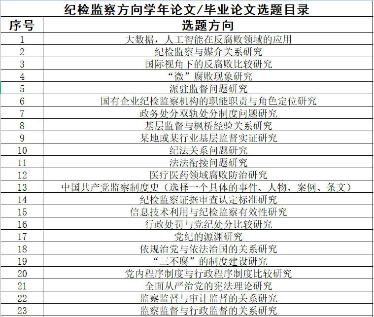 纪检监察方向学年论文 毕业论文选题目录.xls
