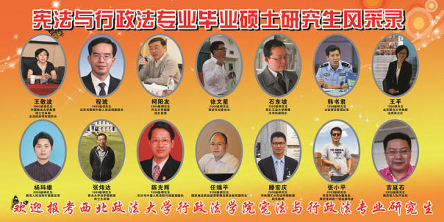 毕业于宪法与行政法专业的硕士研究生就业于全国各地的公、检、法、司和党政机关、高等教育机构和其他企事业单位。他们在各自的岗位上发挥了专业优势,为依法治国贡献着自己的力量,为母校赢得了良好的声誉。